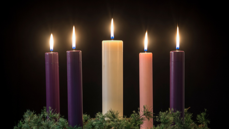 Around the wreath are four candles some combination of purple and pink. Each candle represents a different theme for us to meditate on that week. These are lit, one at a time, on each Sunday of the Advent season. This year, the first Sunday of Advent is November 30th. This sacred season closes on Wednesday, December 24th. On this day, the Christ candle, which is white and located in the center, is lit with all of the others in celebration of the arrival of the Messiah.